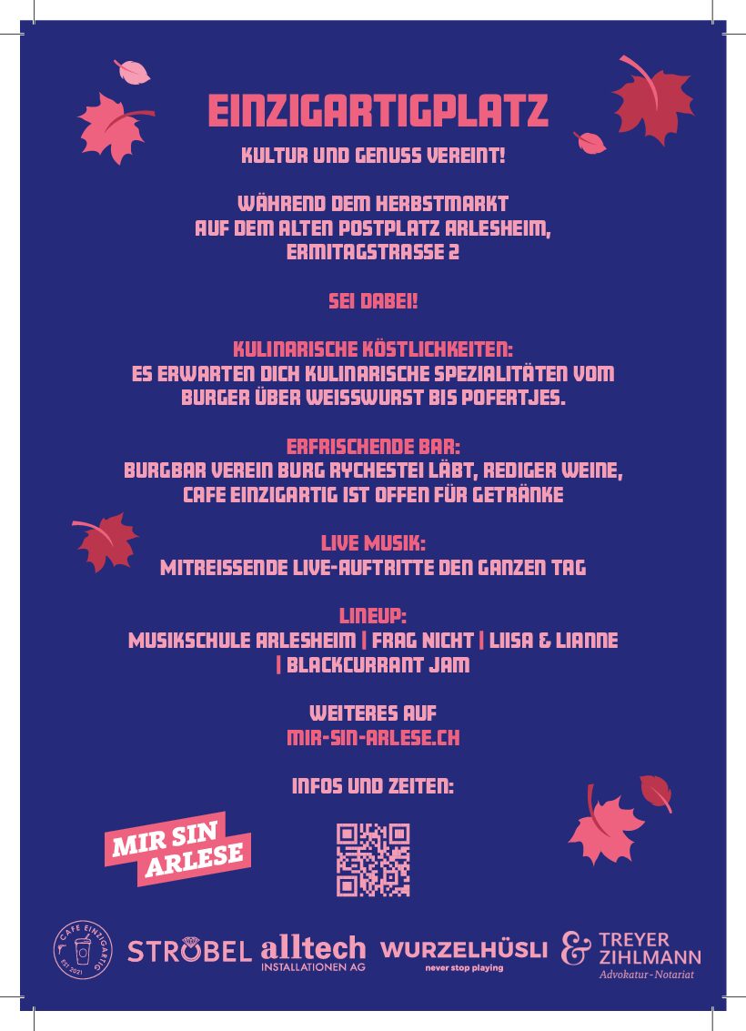 Seien Sie dabei, wenn sich Kultur und Genuss auf magische Weise vereinen! Der Einzigartigplatz erwartet Sie während des Arlesheimer Herbstmarktes, und wir laden Sie herzlich ein, Teil dieses unvergesslichen Events zu sein.
