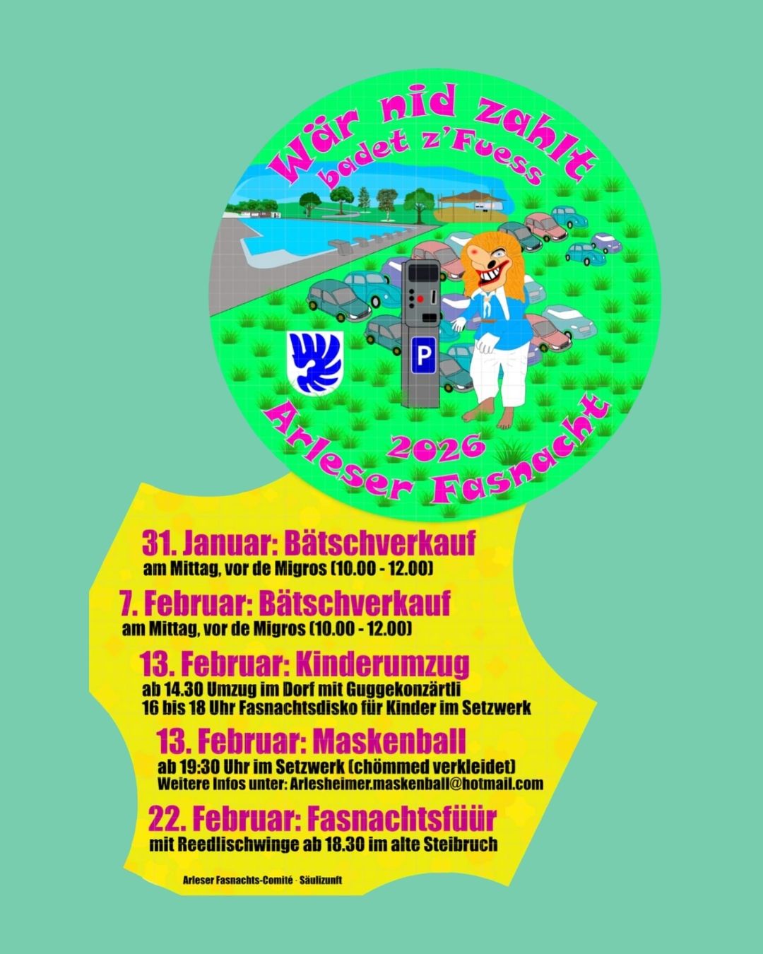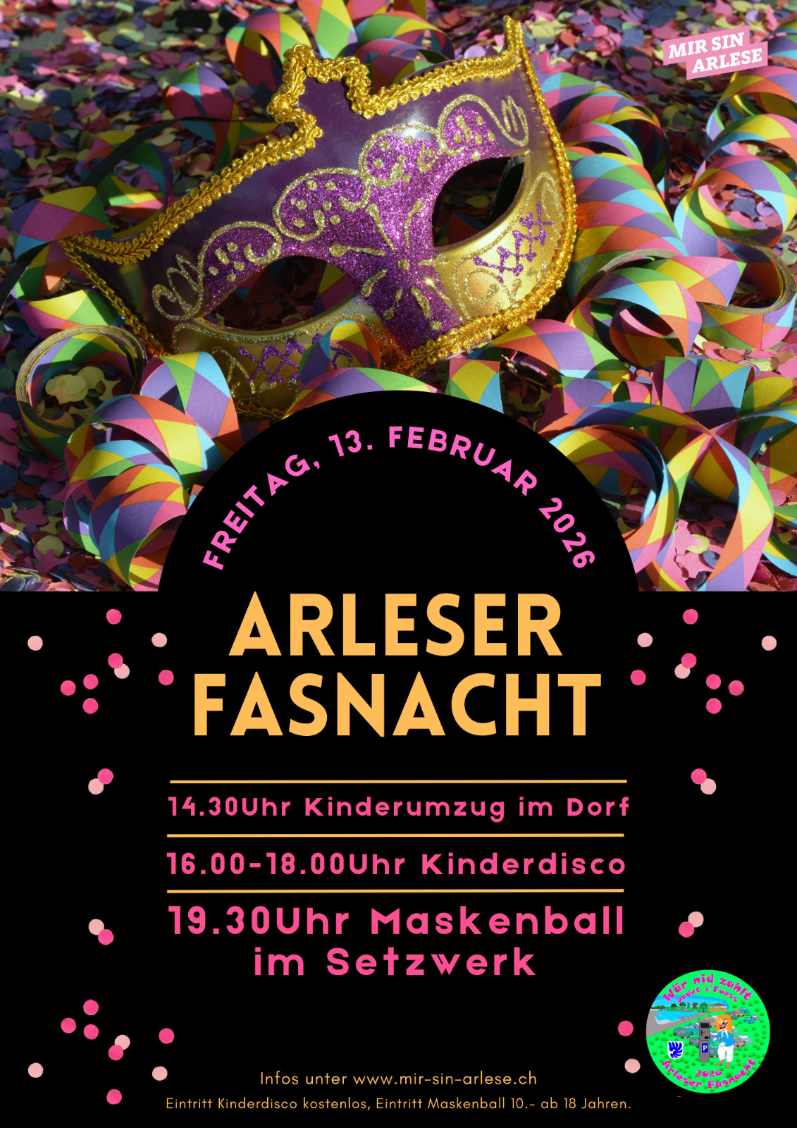 Kommen Sie verkleidet und feiern Sie mit uns! Das Arleser Fasnachts-Comité freut sich auf zahlreiche Besucherinnen und Besucher.