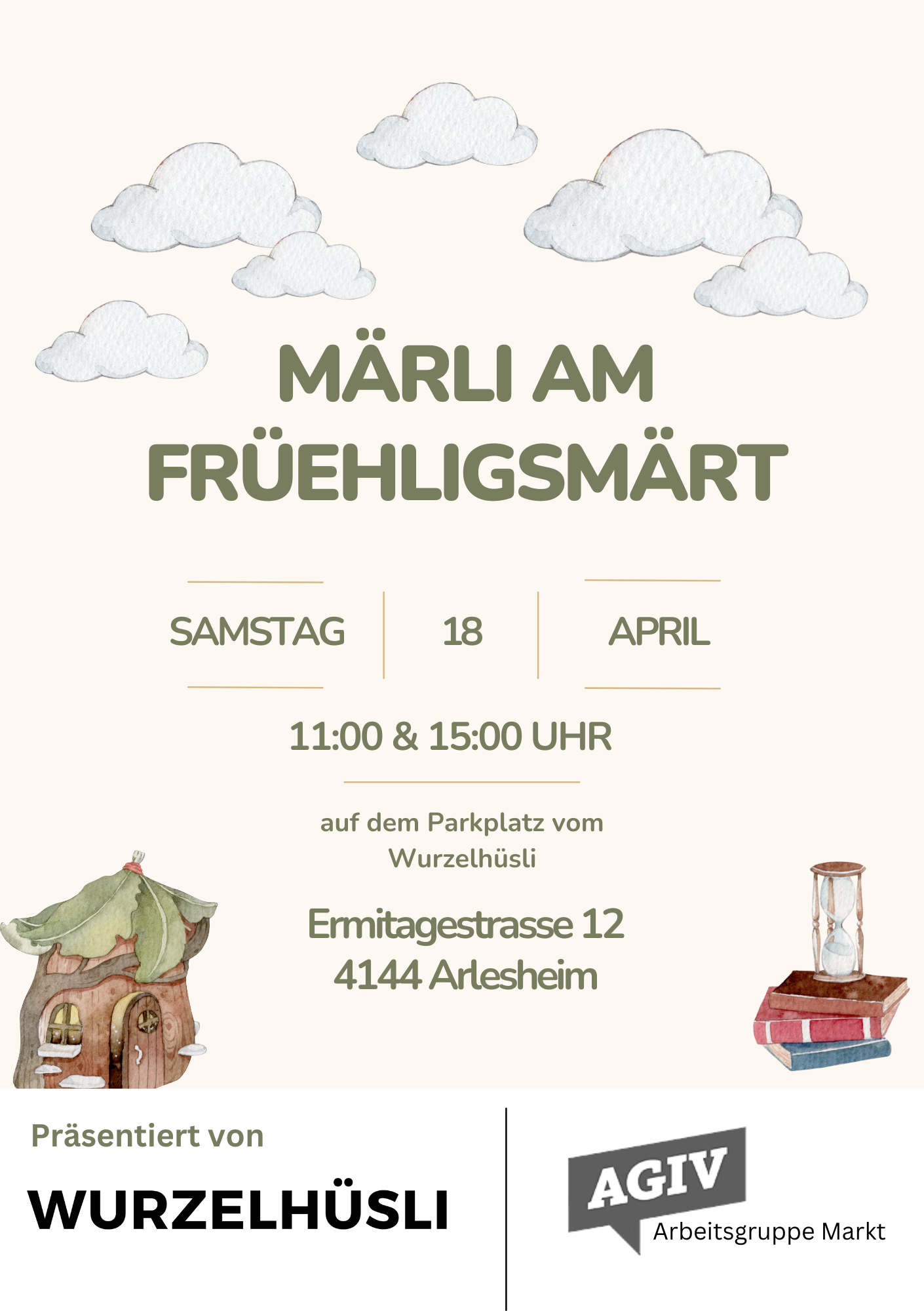 Drei mal im Jahr zu jedem Markt in Arlesheim (Frühling, Herbst & Adventsmarkt) finden die Märli am Märt vom Wurzelhüsli in Zusammenarbeit mit der Marktkommission auf dem Parkplatz vom Wurzelhüsli und im Pärkli hinter dem Dom statt.